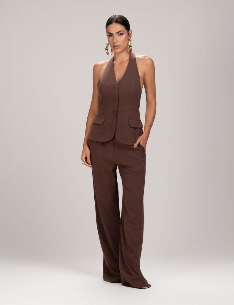 A Blusa Andy expressa a sofisticação da alfaiataria contemporânea com uma leitura feminina e atemporal. Confeccionada em Tecido Armani, destaca-se pelo toque suave, estrutura equilibrada e caimento elegante, proporcionando conforto e presença visual refinada. Com design inspirado no colete clássico, a peça apresenta decote profundo em “V”, recortes precisos e fechamento frontal com botões, que valorizam a silhueta de forma sutil e elegante. A modelagem ajustada ao corpo garante versatilidade, permitindo o uso tanto como peça principal quanto em sobreposições bem construídas. Funcional e sofisticada, a Blusa Andy transita com facilidade entre produções formais e composições modernas, combinando perfeitamente com calças, shorts ou saias de alfaiataria. Um item essencial da Amém Brand, pensado para mulheres que valorizam estilo, personalidade e acabamento impecável.