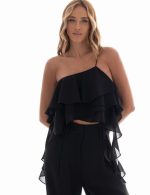 Naturalmente sofisticada, a BLUSA ARIEL vai ser uma ótima opção para compor looks casuais para o dia a dia! Feita em tecido de poliéster traz uma modelagem leve de decote reto com alça finas de um ombro só e detalhe de babados por toda a extensão, tem uma modelagem evase com uma ponta alongada. Fluida e leve para compor looks incríveis nesse verão. Experimente combinar com shorts, sandálias de tiras e bolsa estruturada para um look moderno e sofisticado!