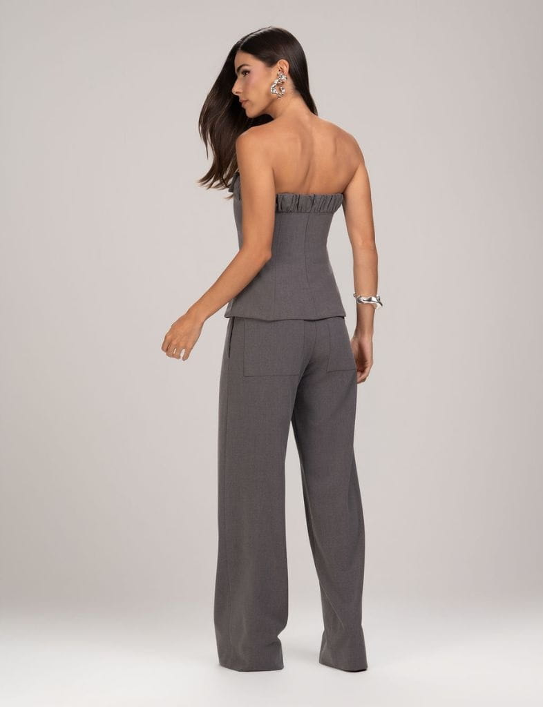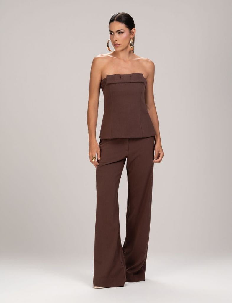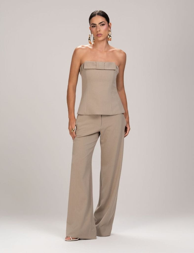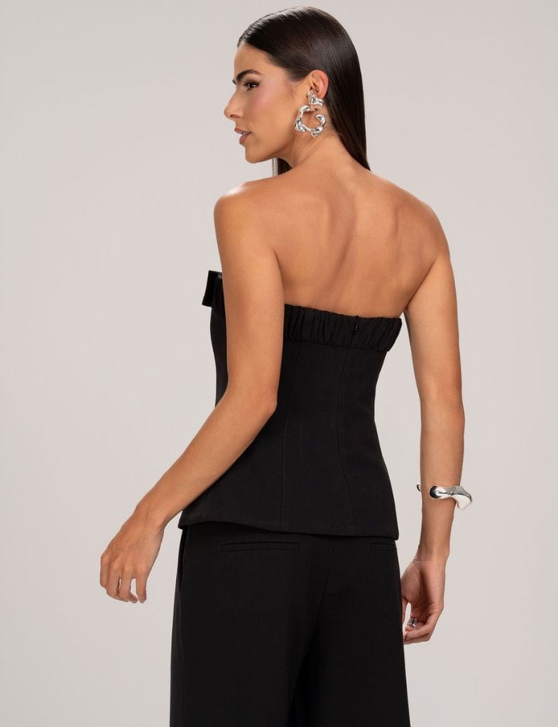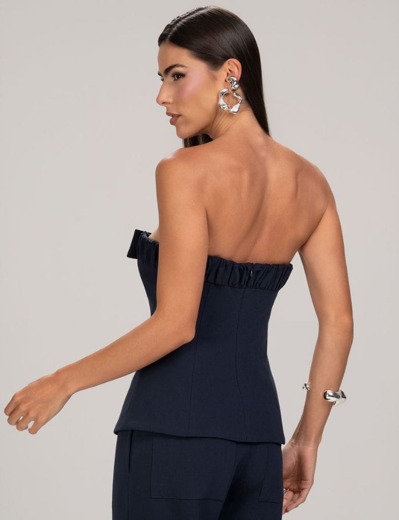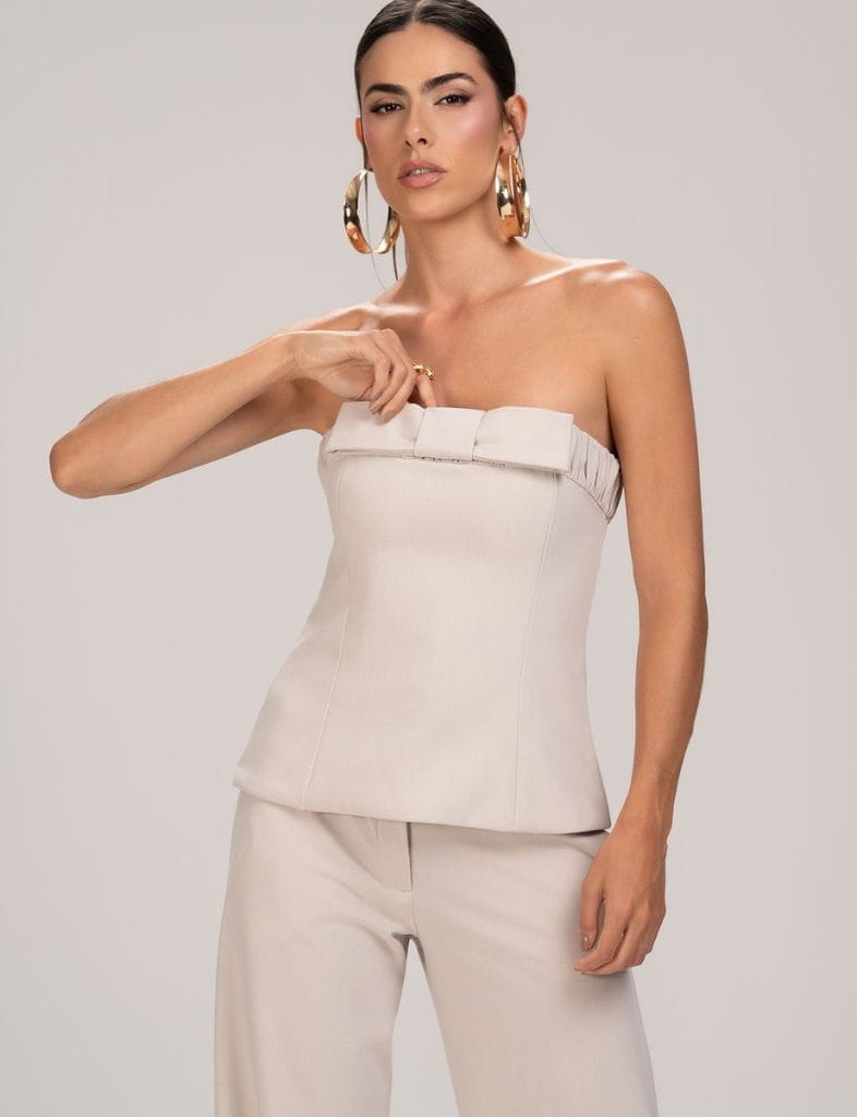 A Blusa Aurora revela elegância contemporânea por meio de um design minimalista e estruturado. Confeccionada em Armani, apresenta toque macio, acabamento refinado, garantindo conforto aliado a uma estética sofisticada. O modelo sem alças destaca o colo com sutileza, enquanto o detalhe sobreposto no busto adiciona dimensão e personalidade à peça. A modelagem ajustada valoriza a silhueta de forma equilibrada, proporcionando caimento impecável e segurança ao vestir. Possui fechamento com zíper invisível nas costas, barbatanas frontais e nas costas para imprimir maior conforto e segurança na vestimenta, além de elástico. Versátil e atemporal, a Blusa Aurora compõe produções elegantes para diferentes ocasiões — do casual refinado a eventos especiais — harmonizando perfeitamente com peças de alfaiataria ou propostas mais modernas.