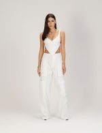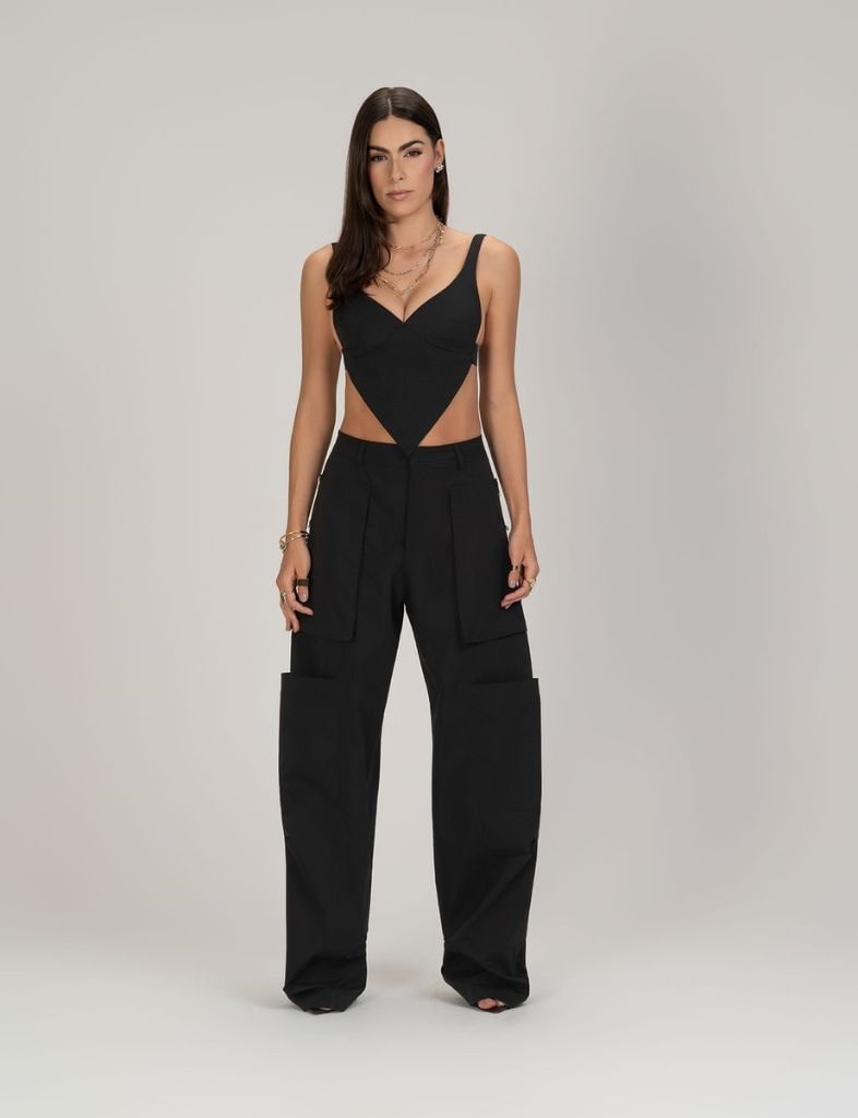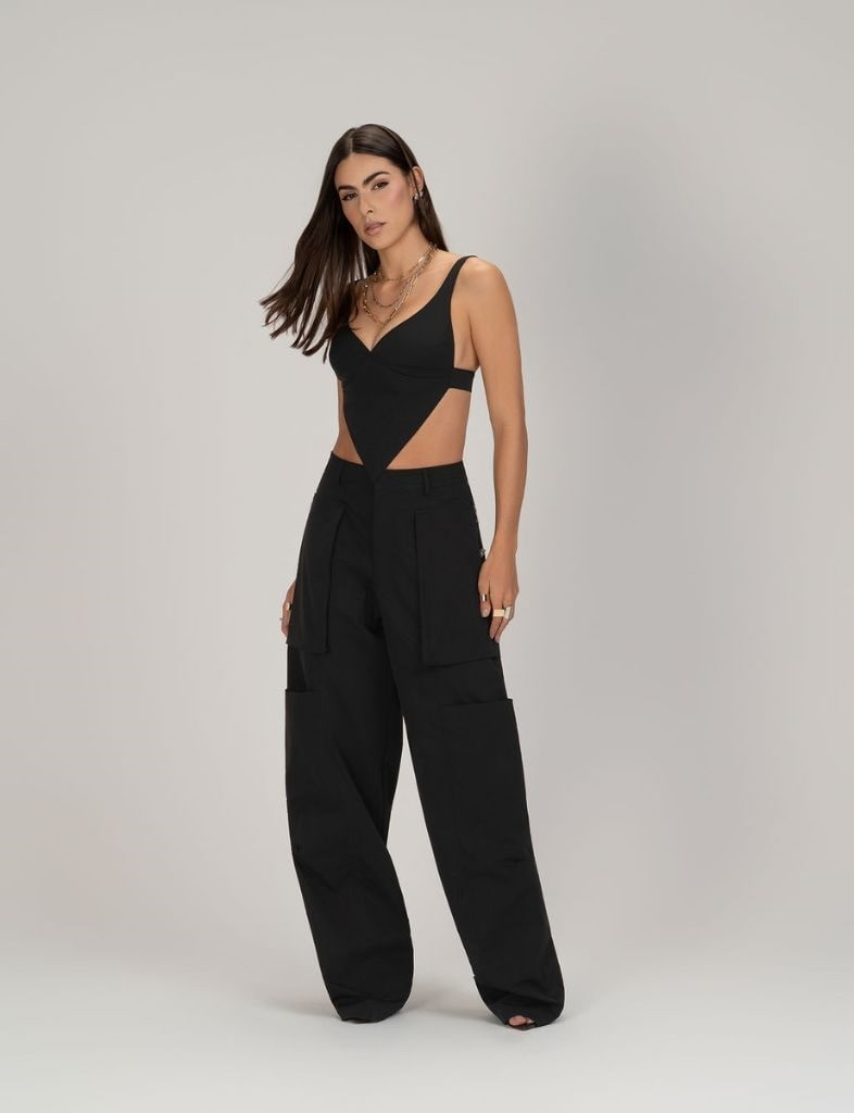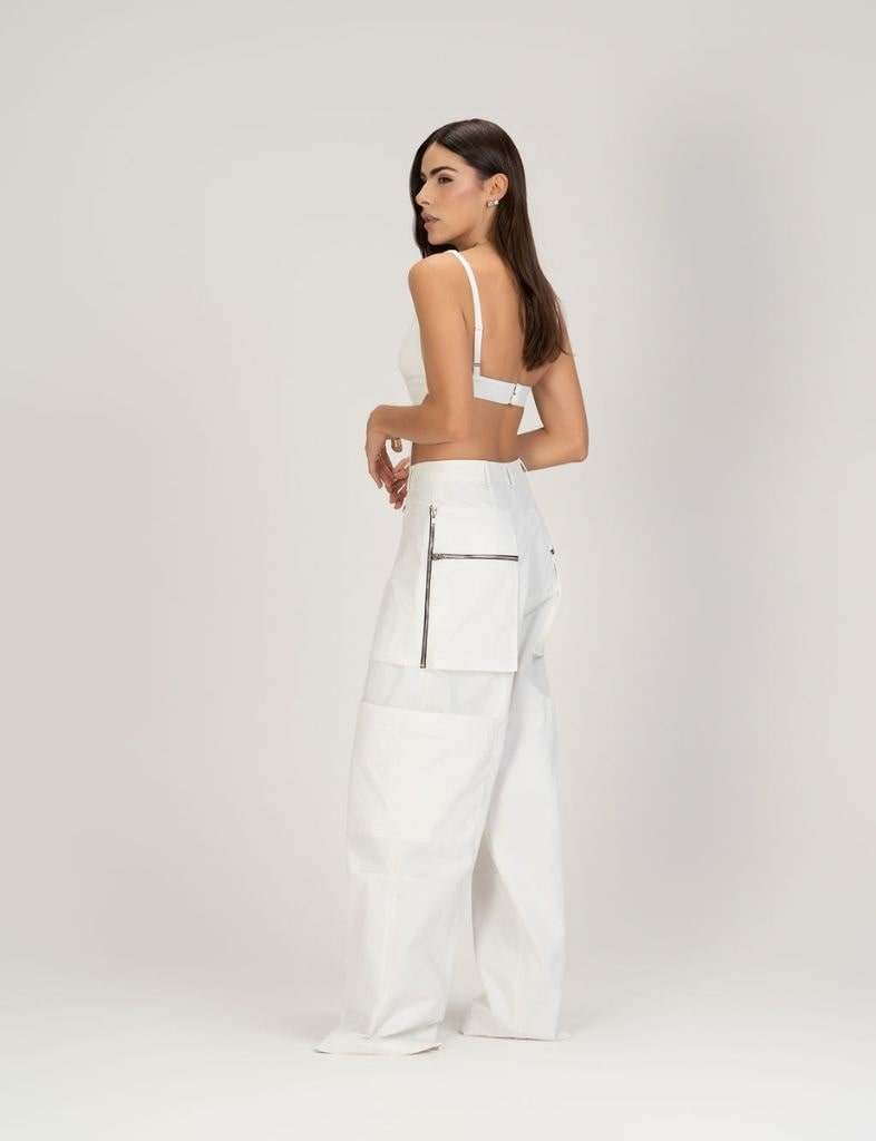 A Calça Memory também vem com a tendência utilitária como referencia, porém com alguns detalhes que diferenciam a peça deixando – a com uma proposta que transita entre a vibe street e a vibe moderna. Ela tem cos com fechamento frontal com braguilha, zíper e botão. Zíperes laterais como detalhe e bolsos frontais alongados estilo patch.