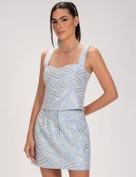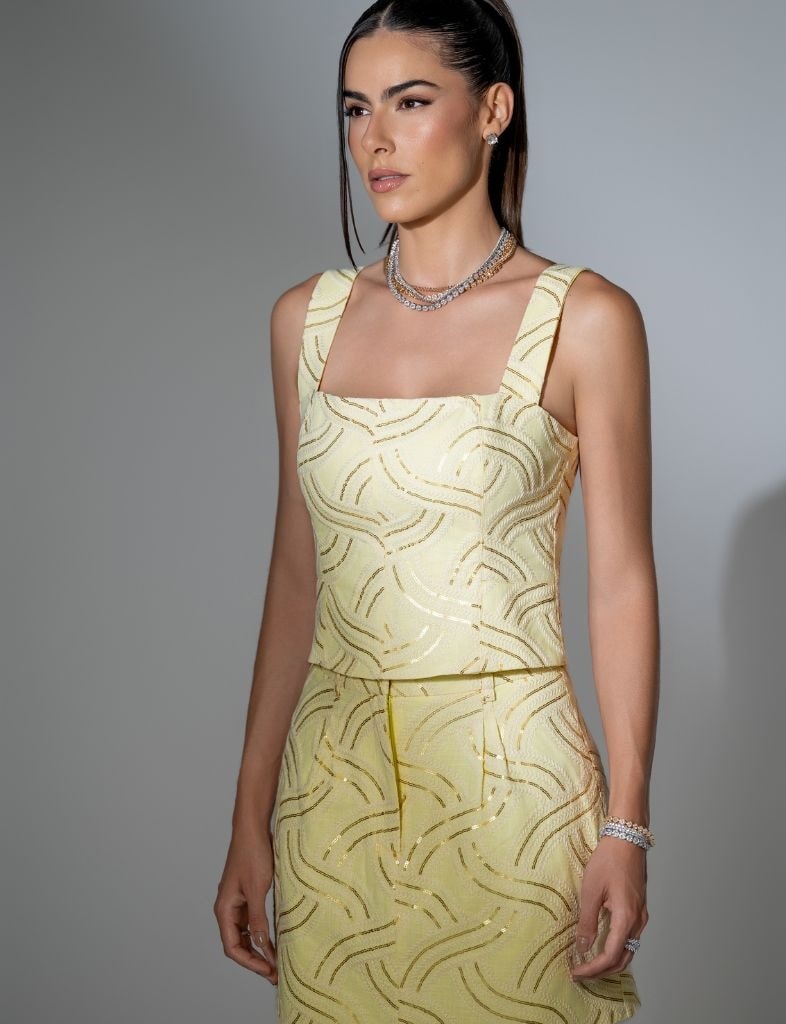 O Cropped Day é sinônimo de elegância e sofisticação atemporal. Desenvolvido no tecido Darma, conhecido por seu toque macio, estrutura refinada e brilho sutil, o modelo valoriza a silhueta com um caimento impecável e acabamento de alta costura. Com decote reto e alças largas, o design equilibra modernidade e conforto, proporcionando sustentação e um visual contemporâneo, fechamento nas costas com zíper destacável. O bordado com aplicações delicadas em linhas orgânicas e discretamente cintilantes confere um toque de glamour sofisticado, ideal para composições que vão do casual chic às produções mais elaboradas. O Cropped Day é uma peça curinga e versátil, perfeita para combinar com saias, calças de alfaiataria ou shorts de tecidos nobres, compondo looks elegantes e memoráveis.