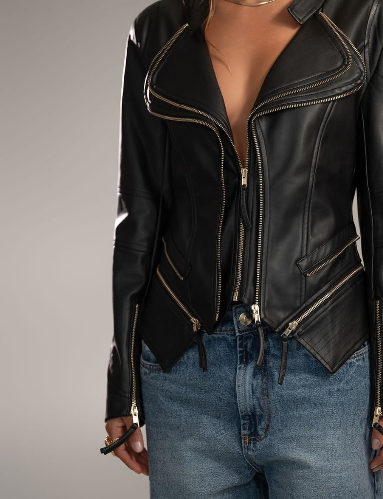 A Jaqueta Illy é uma peça marcante e versátil, confeccionada em couro sintético de alta qualidade, com acabamento forrado que garante conforto e durabilidade. Seu design moderno traz corte ajustado e estruturado, realçando a silhueta com elegância e atitude. Os zíperes frontais e laterais adicionam um toque contemporâneo, enquanto o brilho sutil do material proporciona sofisticação atemporal. Uma escolha perfeita para compor produções ousadas ou casuais com estilo, sendo indispensável em qualquer guarda-roupa feminino.