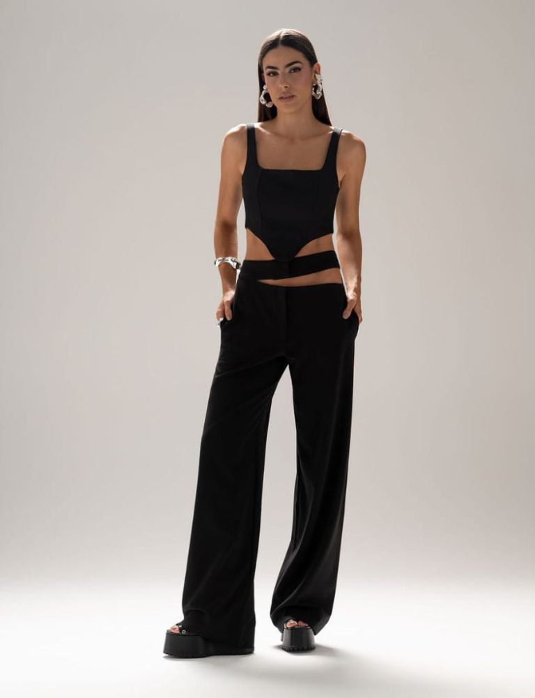 Esse é o Top mabel. Desenvolvido em tecido alfaiataria ele tem detalhes de fechamento com botões cobertos no mesmo tecido no pescoço e na lateral, deixando um decote maravilhoso nas costas. Ele tem decote reto e uma barra assimétrica trazendo um charme à peça. Com o Top Mabel temos certeza que escolhas bem feitas fazem a diferença no guarda roupa de qualquer Amenzete.